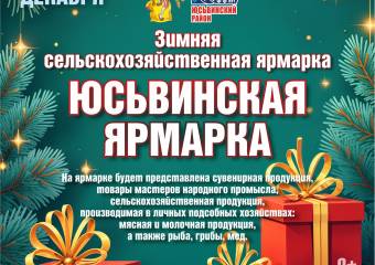 25 декабря с 10:00 до 15:00 на территории Дома культуры пройдет традиционная зимняя сельскохозяйственная ярмарка «Юсьвинская ярмарка».